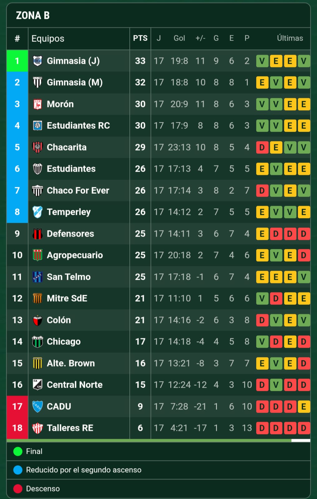 La Primera Nacional 2025 cerró la primera rueda este fin de semana con los últimos partidos pendientes de la fecha 15 y cada equipo comienza a sacar conclusiones antes de iniciar la segunda etapa. Luego de las primeras 17 fechas, Colón se ubica decimotercero en la Zona B con 21 puntos y quedó a 5 puntos del octavo, Temperley, el último que está clasificando al reducido por el segundo ascenso y al que enfrentará este sábado 14 de junio a las 16:40 por EME, por la fecha 18.