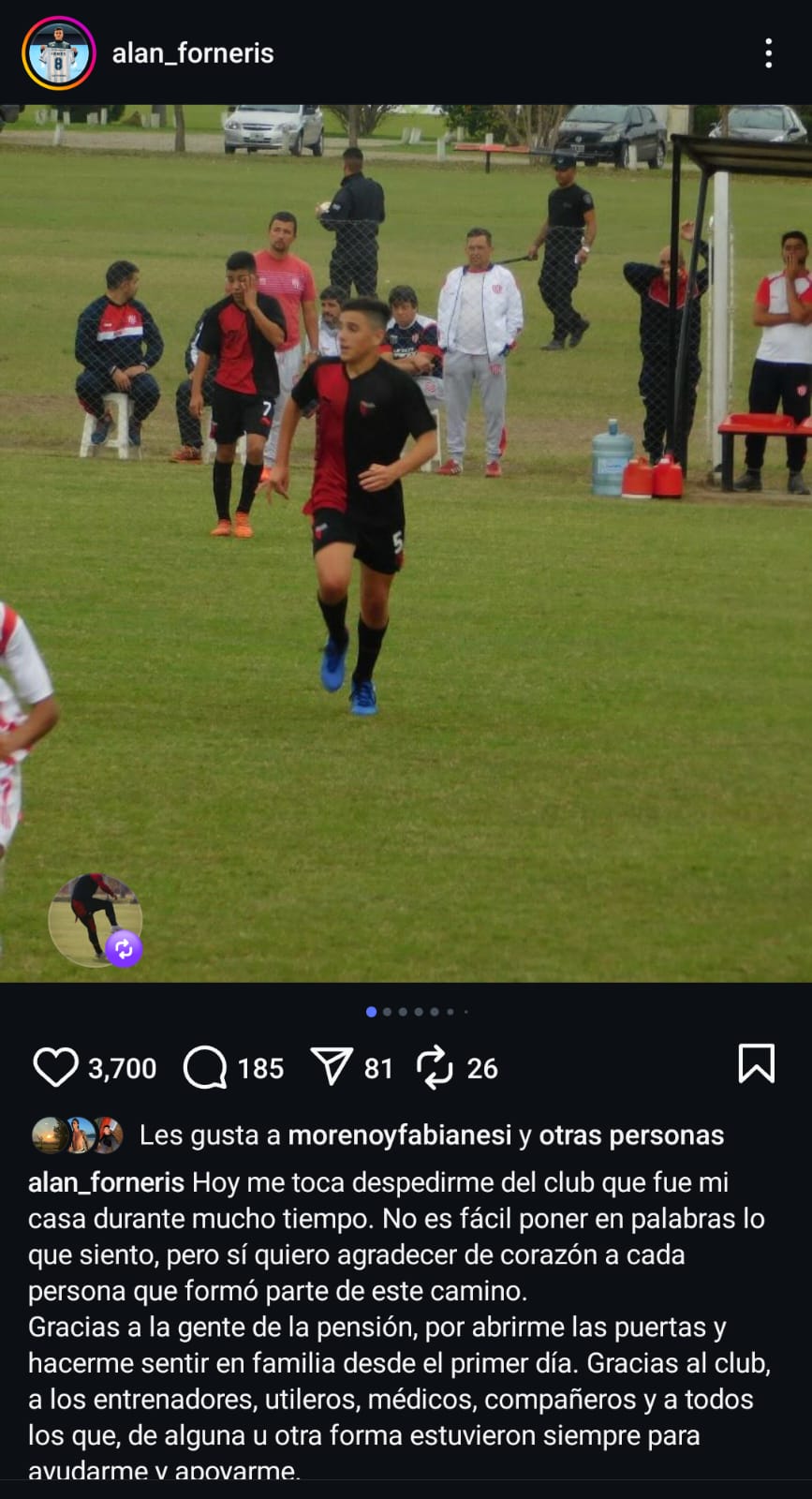 El propio Forneris se despidió de Colón en Instagram en las últimas horas: «hoy me toca despedirme del club que fue mi casa durante mucho tiempo. No es fácil poner en palabras lo que siento, pero sí quiero agradecer de corazón a cada persona que formó parte de este camino. El 5 de la Academia agregó: «gracias a la gente de la pensión, por abrirme las puertas y hacerme sentir en familia desde el primer día. Gracias al club, a los entrenadores, utileros, médicos, compañeros y a todos los que, de alguna u otra forma estuvieron siempre para ayudarme y apoyarme. Gracias también al hincha por hacerme sentir su apoyo en cada partido».