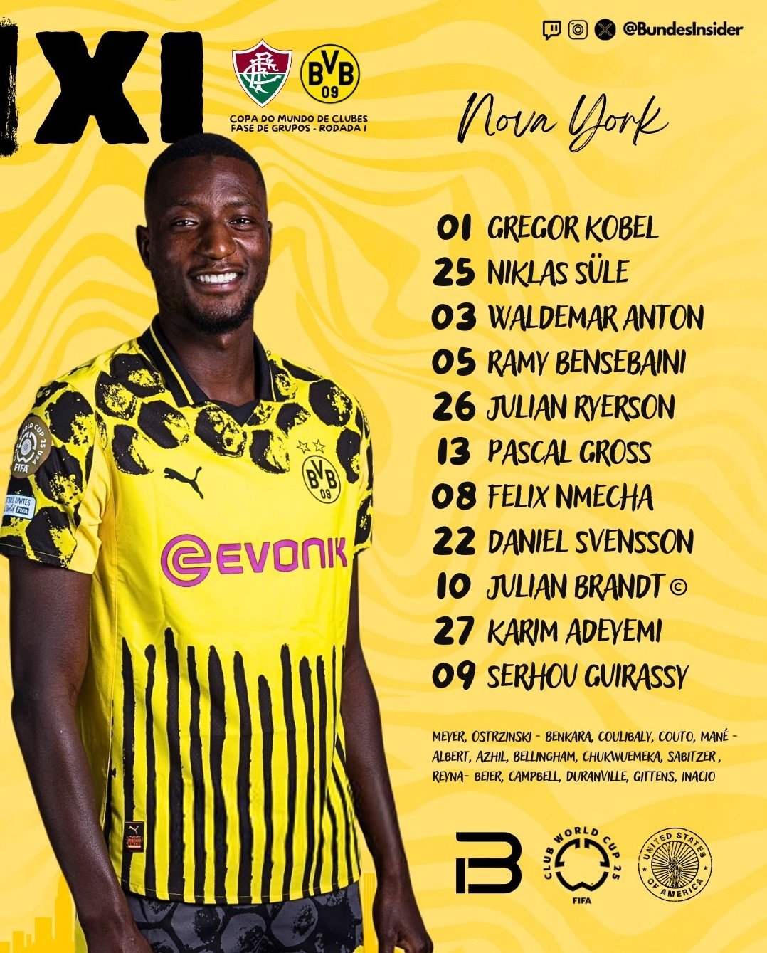 Fluminense y Borussia Dortmund se enfrentan este mediodía por el Grupo F del Mundial de Clubes 2025. El partido se juega, desde las 13 hora argentina, en el Estadio MetLife de New Jersey y tendrá el arbitraje de Ilgiz Tantashev de Uzbekistán.