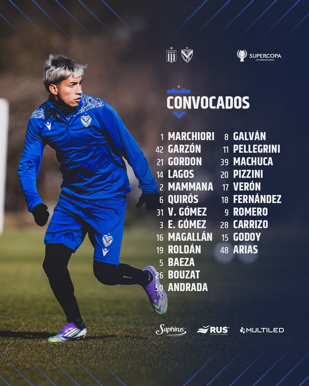 Vélez: 1- Tomás Marchiori/ 14- Agustín Lagos, 2- Emanuel Mammana, 31- Valentín Gómez y 6- Aaron Quiros/ 20- Francisco Pizzini, 5- Claudio Baeza, 26- Agustín Bouzat y 3- Elías Gómez/ 28- Maher Carrizo y 9- Braian Romero. DT: Guillermo Barros Schelotto.