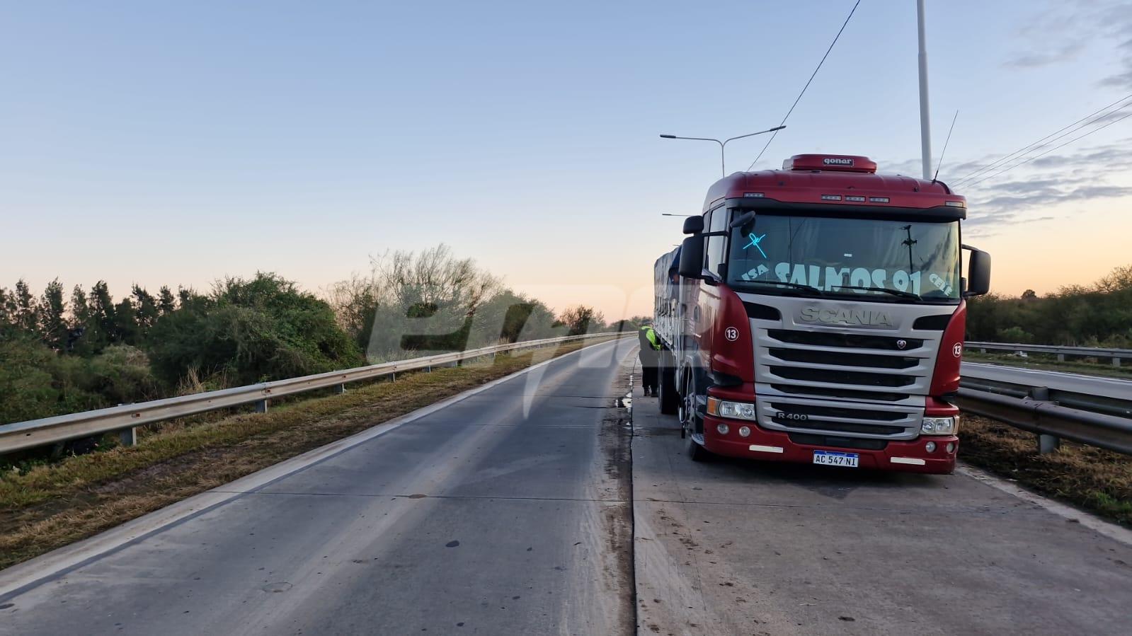 El hecho ocurrió alrededor de las 2. El conductor relató que mientras circulaba por el carril rápido, un automóvil que lo sobrepasaba por la derecha realizó una maniobra brusca para esquivar un perro, lo que lo obligó a girar bruscamente para evitar el impacto. Esa maniobra lo llevó a perder el control, golpear el guardarrail y reventar una de las ruedas delanteras.