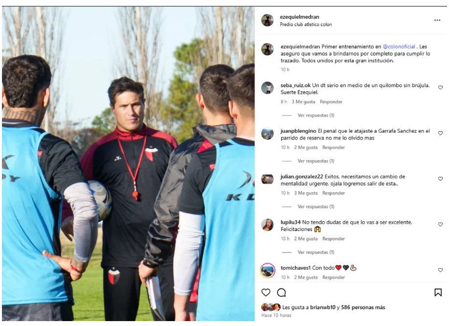 El propio Medrán utilizó su Instagram para dejar un mensaje a los hinchas de Colón y expresó: «Les aseguro que vamos a brindarnos por completo para cumplir lo trazado. Todos unidos por esta gran institución».