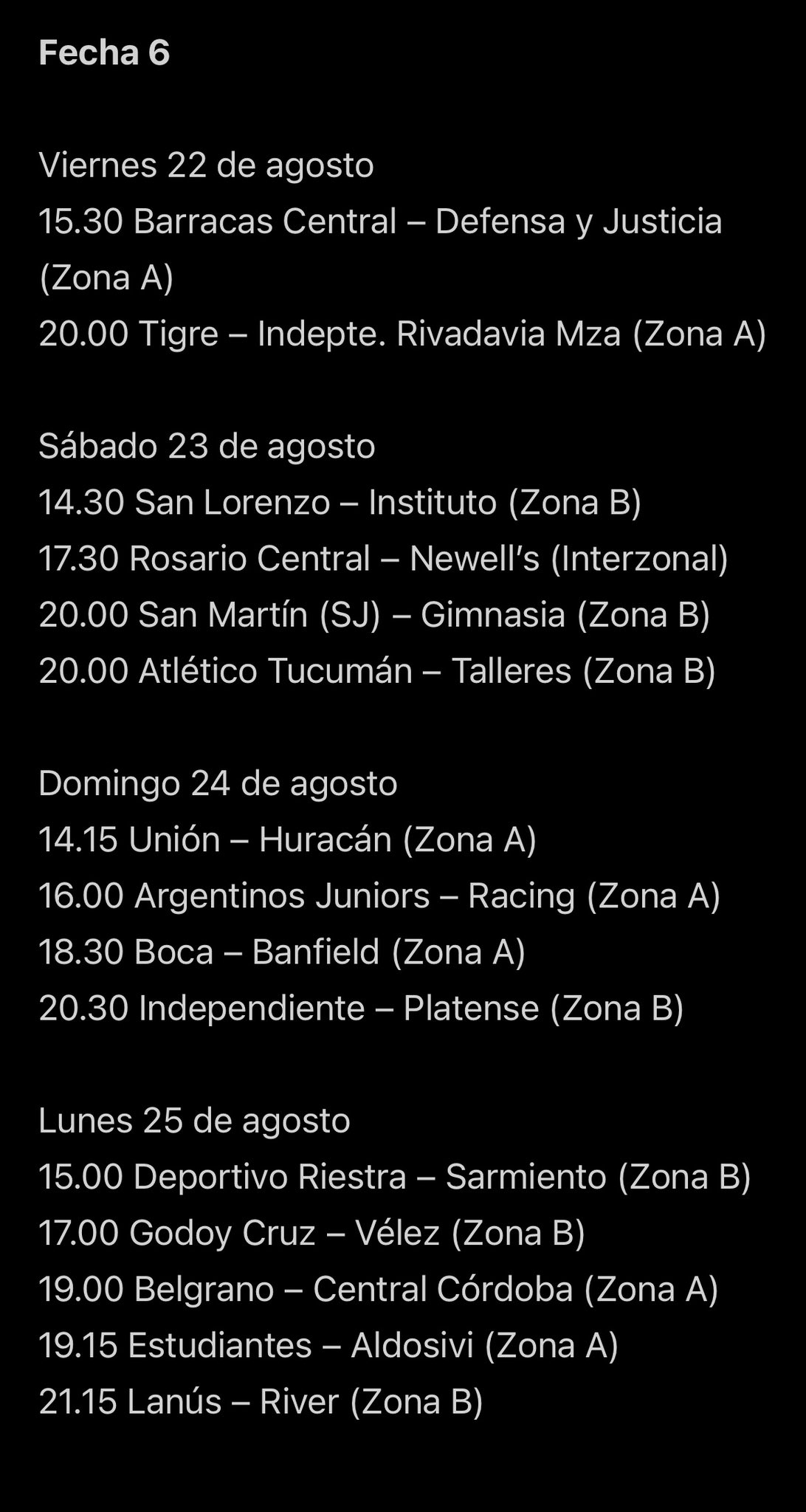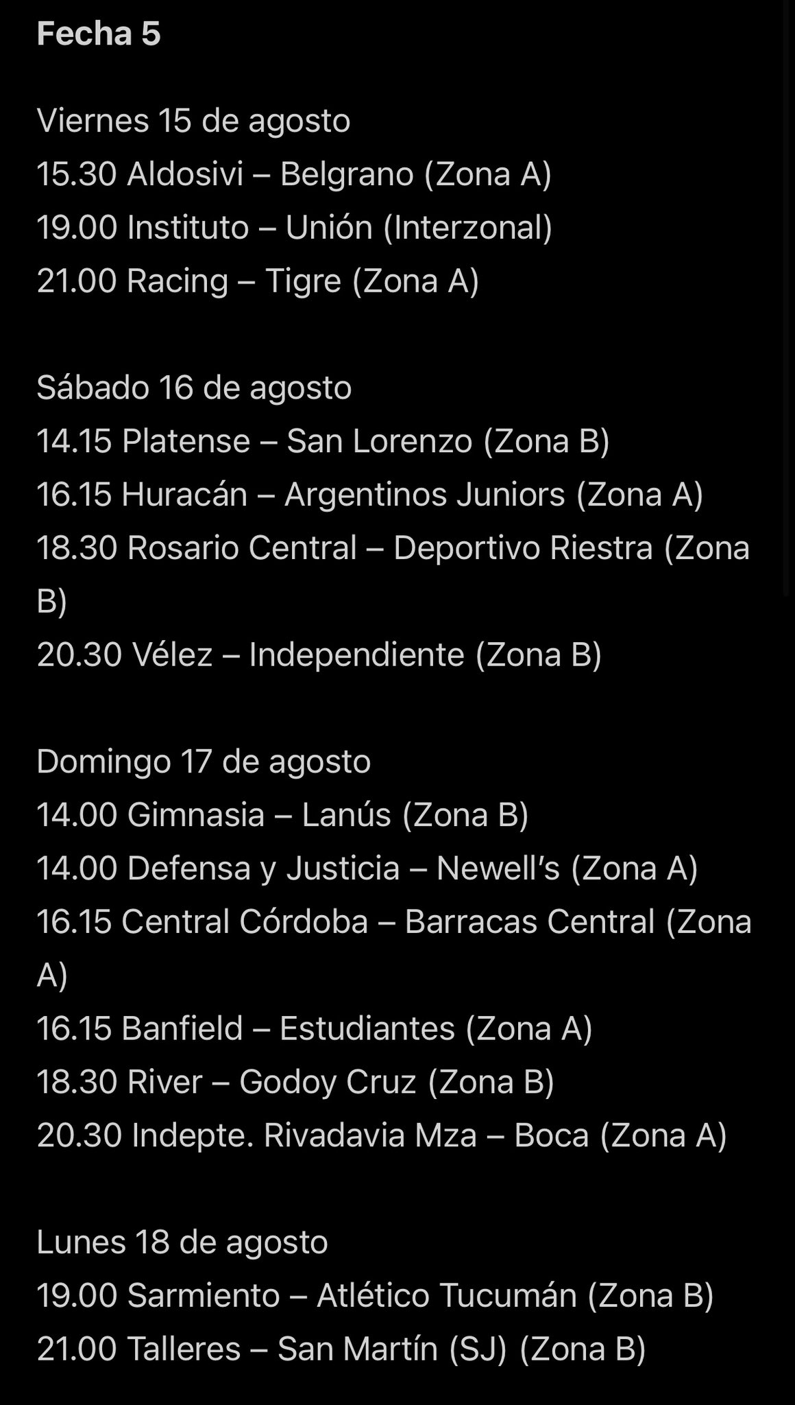Las fechas 5 y 6 completas