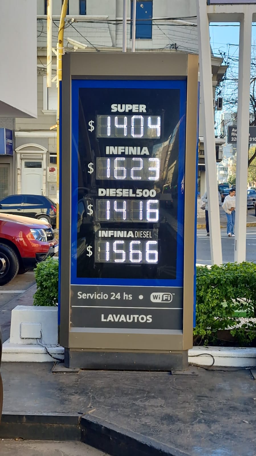 En las estaciones de servicio locales, el litro de nafta Súper pasó a costar $1.404, mientras que la Infinia se ubica en $1.623. El Diesel 500 se vende a $1.416 y la Infinia Diesel, a $1.566.