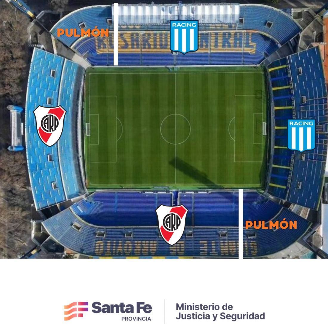 El Ministerio de Justicia y Seguridad de Santa Fe presentó este martes el operativo para el partido entre Racing y River por los cuartos de final de la Copa Argentina, que se disputará este jueves a las 18 en el estadio de Rosario Central. En total, se dispondrán 630 efectivos policiales.
