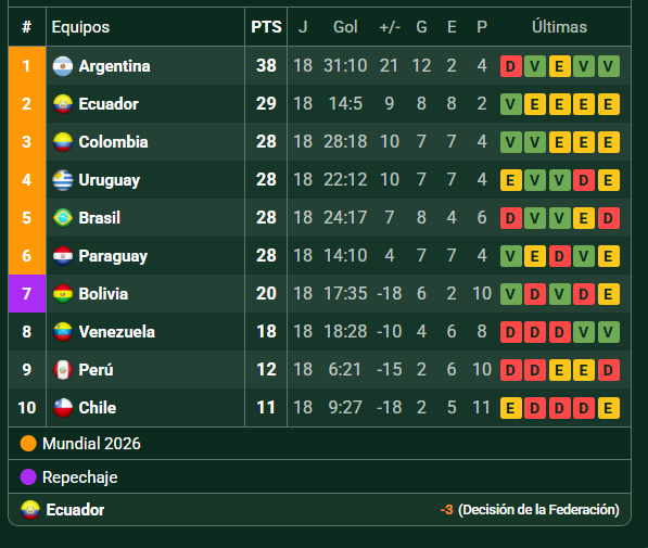 La selección nacional cerró las Eliminatorias Sudamericanas rumbo al Mundial 2026 Estados Unidos, México y Canadá con una derrota 1 a 0 ante Ecuador en Guayaquil. A 274 días del comienzo de la próxima Copa del Mundo que comenzará el 11 de junio del año que viene.