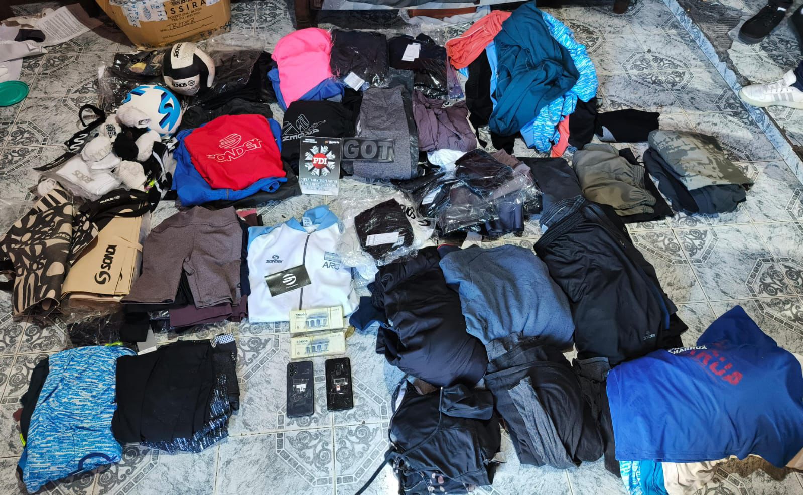 Durante el registro de los inmuebles se incautó la totalidad de la mercadería sustraída que se encontraba distribuida entre ambos domicilios: numerosas prendas deportivas como calzas, buzos, camperas, mallas y remeras, bolsas ecológicas, entre otros elementos reconocidos como propiedad de la firma damnificada. Asimismo, se secuestró un Renault Sandero, la suma de $ 451.000 y siete teléfonos celulares.