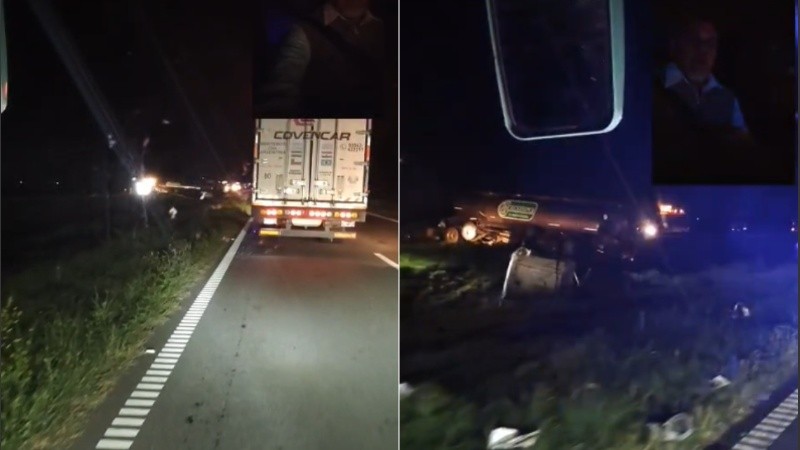 En el lugar trabajaron Bomberos y Corredores Viales, mientras que el conductor del camión, perteneciente a una empresa de lácteos, sufrió una crisis nerviosa y debió ser asistido por personal médico.