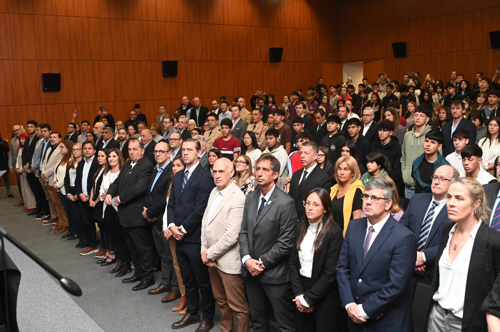 El acto fue encabezado por el intendente Juan Pablo Poletti y la presidenta del Concejo Municipal, Adriana “Chuchi” Molina. También participaron convencionales constituyentes, concejales, funcionarios del gabinete municipal, diputados provinciales, representantes de la mesa productiva y de diálogo, de la mesa interreligiosa, de instituciones académicas, de las fuerzas armadas y alumnos de 5º año de ocho escuelas, una por cada distrito de la ciudad.