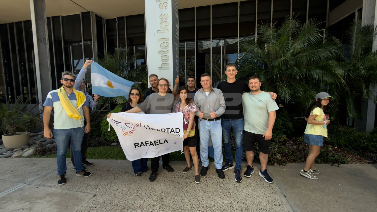 Milei llegó cerca de las 11 de la mañana al hotel Los Silos, donde lo esperaban militantes libertarios detrás de un vallado. En medio de un estricto operativo de seguridad, el mandatario saludó y arengó a los presentes, acompañado por su hermana, Karina Milei, detalló el móvil de EME.