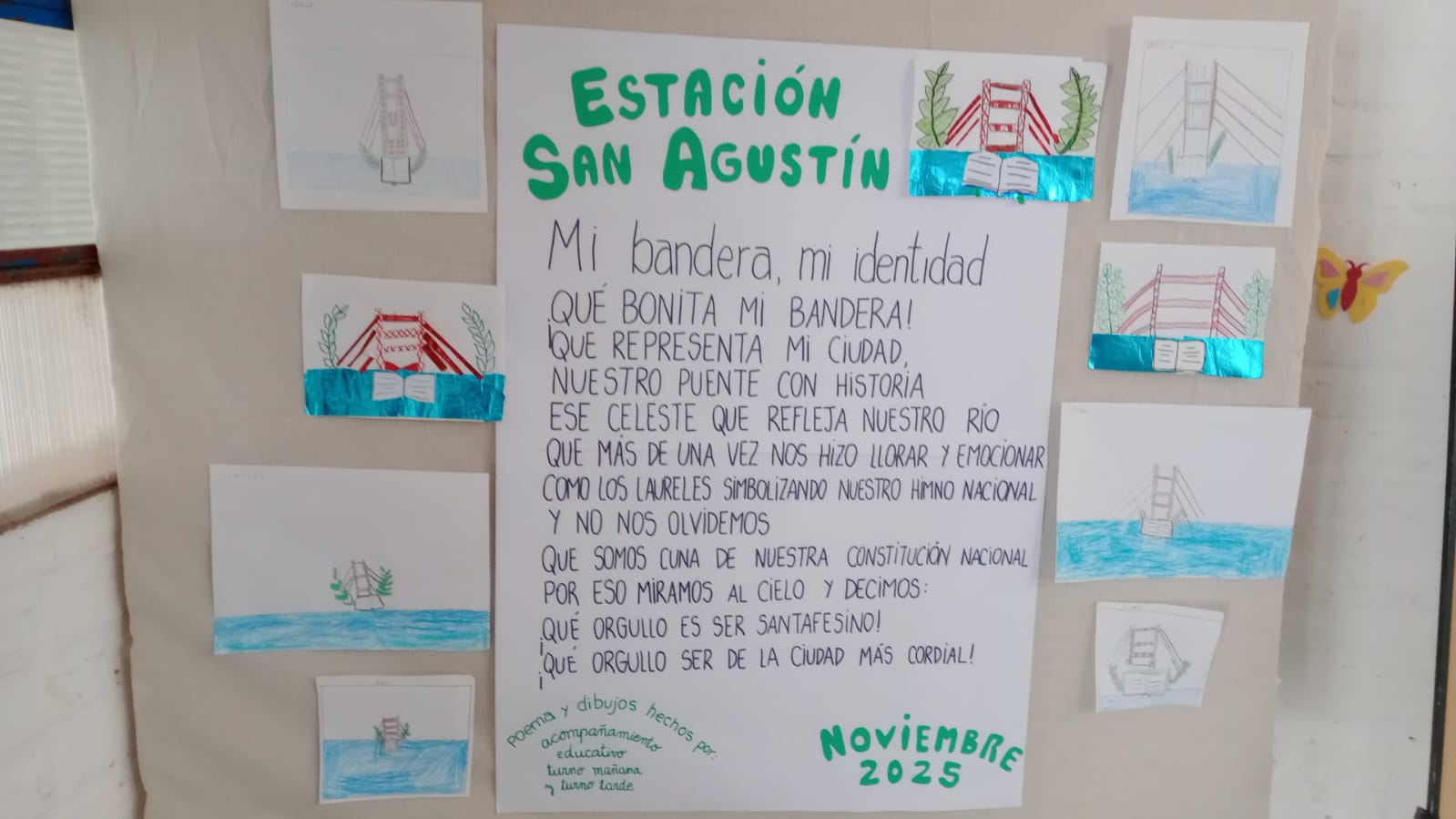 De igual modo, en la Estación San Agustín, la confección de la bandera se convirtió en una verdadera actividad conjunta donde participaron niños de apoyo escolar, chicas del taller de costura, mujeres de bordado y todo el personal de la Estación, bordando el puente y dando detalles al Libro de la Constitución, en un ejemplo de trabajo comunitario e intergeneracional.