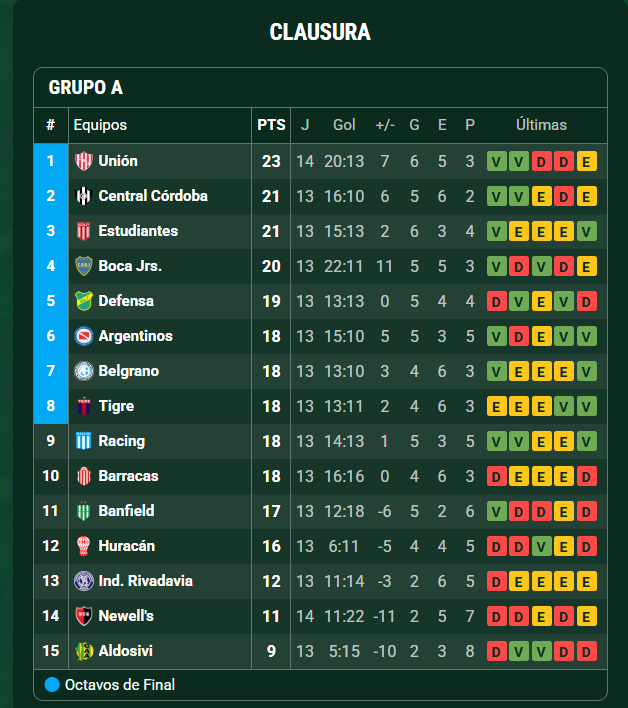 Si bien faltan varios partidos para completar la fecha, Unión sabe que tiene un pie y medio en octavos de final. Para tener en cuenta, en el Torneo Apertura 2025, el mínimo para quedar entre los 8 primeros fue de 21 puntos.
