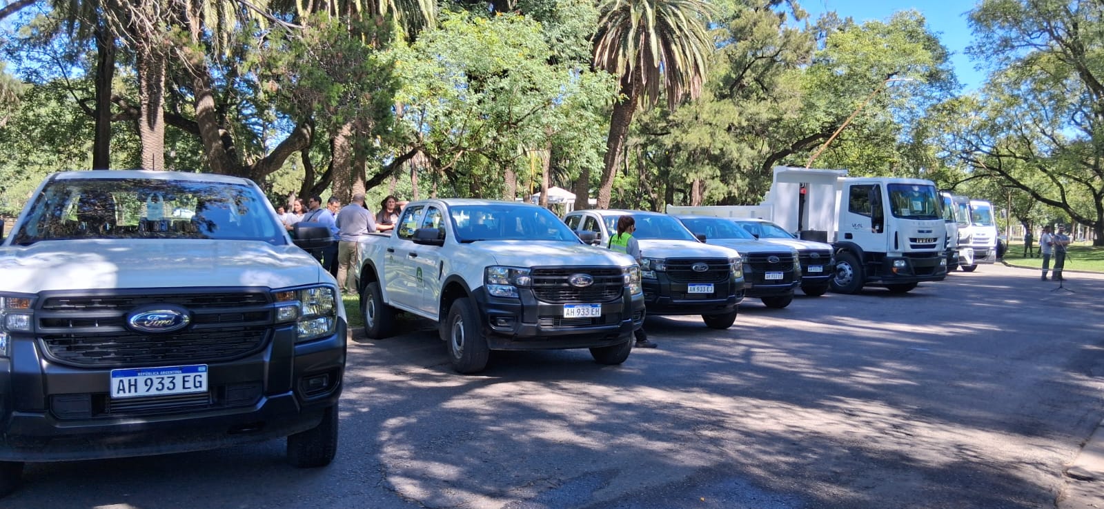 En un acto realizado este viernes en el Parque Garay, la Municipalidad concretó la entrega de 30 nuevas unidades destinadas a fortalecer la capacidad operativa de las distintas áreas estratégicas como Ambiente, Control, Espacios Verdes, Gestión de Seguridad Institucional (GSI) y la Dirección de Hidráulica. La incorporación incluye cuatro retroexcavadoras, una motoniveladora, dos tractores, cinco camiones, 13 camionetas, cuatro automóviles y un utilitario.