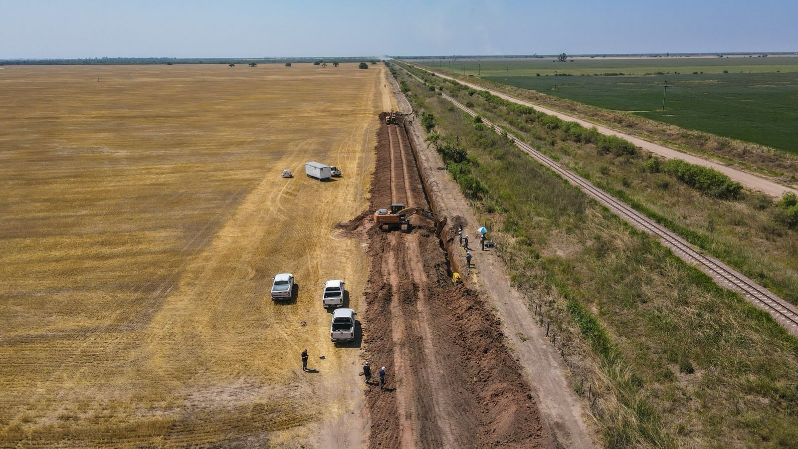 “Actualmente, los equipos trabajan en el tendido de redes colectoras, con colocación de bocas de registro y conexiones sobre las calles Colón, Lavalle, General López y Urquiza. En paralelo, avanzan las tareas en las lagunas de tratamiento, donde se ejecuta el levantamiento de terraplenes, una intervención esencial para la futura puesta en marcha del sistema”, detalló Marmiroli.