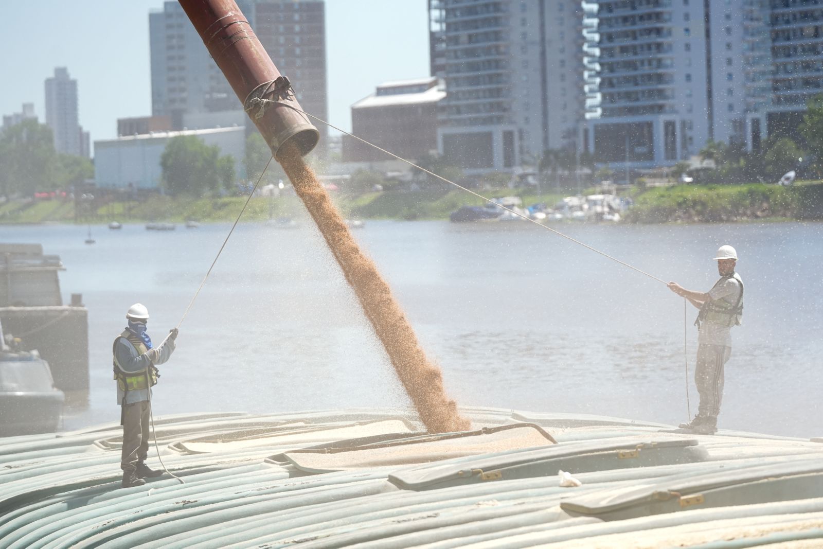 El subsecretario de Transporte y Logística de la Provincia, Jorge Henn, junto al presidente del Ente Administrador Puerto Santa Fe, Leandro González, anunciaron este miércoles el embarque de 5.000 toneladas de trigo desde el Puerto de Santa Fe con destino al Puesto de San Lorenzo, reafirmando la importancia del puerto santafesino en el sistema productivo y logístico de la región.