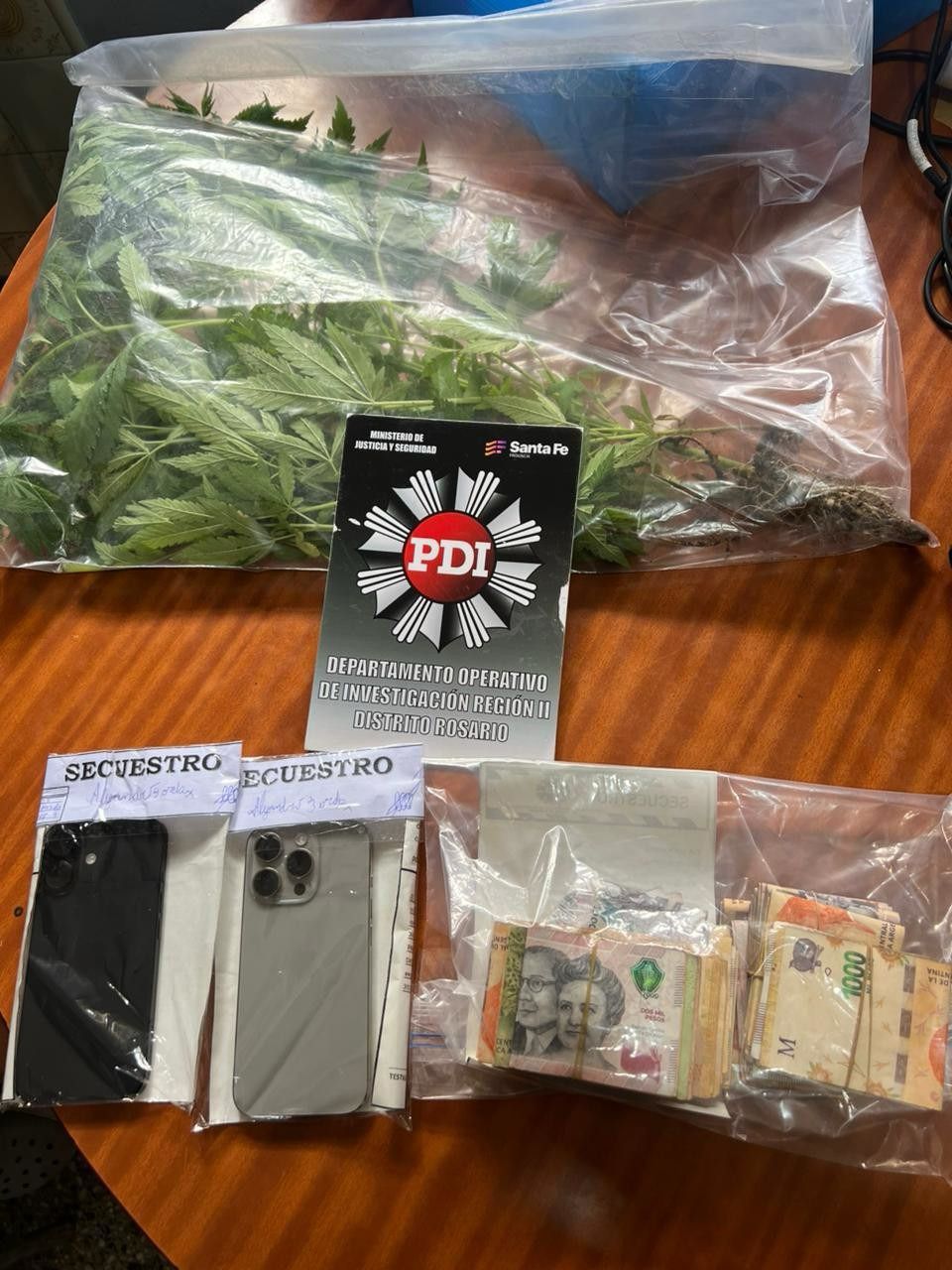 Los allanamientos permitieron el secuestro de dinero en efectivo por 786.000 pesos; diez teléfonos celulares; trece plantines de marihuana y un pendrive, elementos que fueron incorporados a la causa por homicidio y al legajo por asociación ilícita.