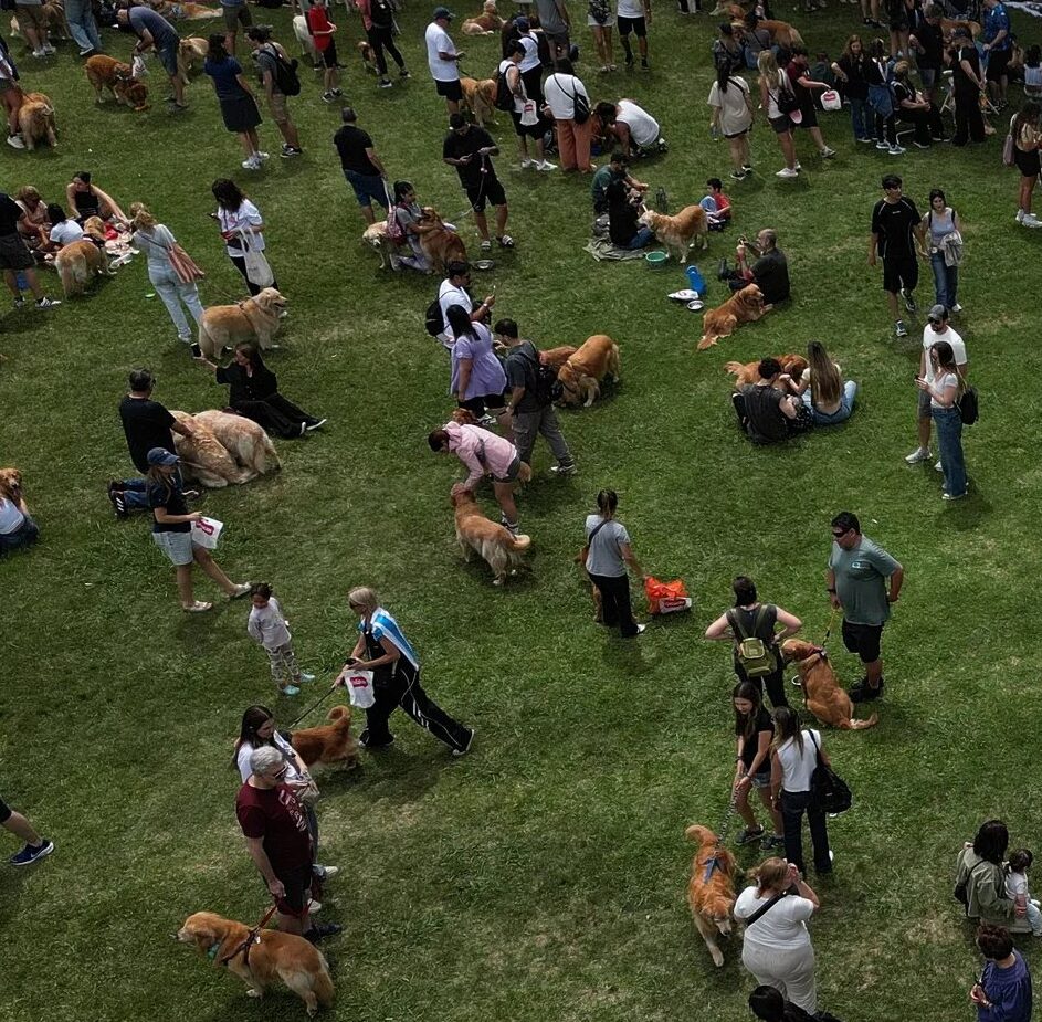 La postal fue impactante. Una marea dorada de miles de perros sociables, juguetones y enérgicos ocupó cada rincón del parque, sorprendiendo a vecinos, turistas y a quienes simplemente paseaban por la zona. El evento se convirtió rápidamente en una fiesta familiar, llena de fotos, juegos y abrazos peludos.