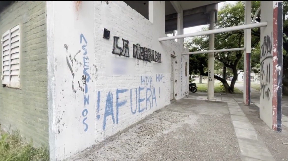 El episodio ocurrió en una casa ubicada en el complejo Fonavi San Jerónimo, donde aparecieron pintadas en la fachada del inmueble con mensajes de repudio como “Asesinos HDP” y “Afuera”. La situación fue advertida durante la jornada, aunque hasta el momento no se logró establecer quiénes fueron los responsables ni en qué horario se realizaron las pintadas.