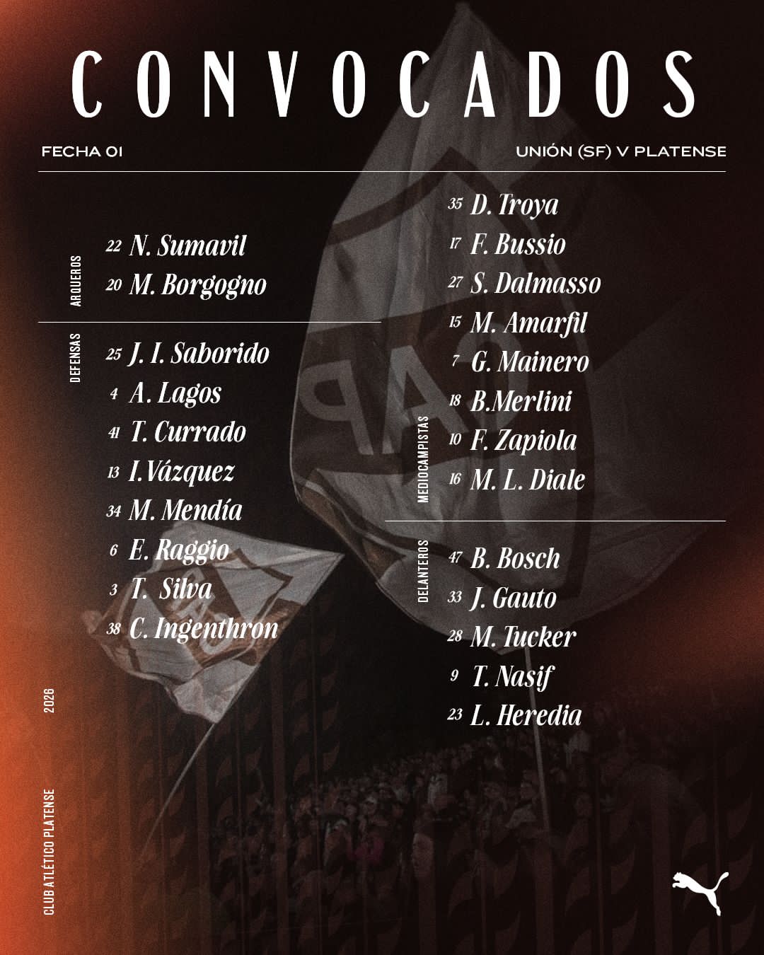 Platense: 22- Nicolás Sumavil/ 25- Juan Ignacio Saborido, 13- Ignacio Vázquez, 6- Eugenio Raggio y 3- Tomás Silva/ 7- Guido Mainero, 15- Franco Maximiliano Amarfil, 17- Felipe Bussio y 10- Franco Zapiola/ 33- Juan Gauto y 23- Leonardo Heredia. DT: Walter Zunino.