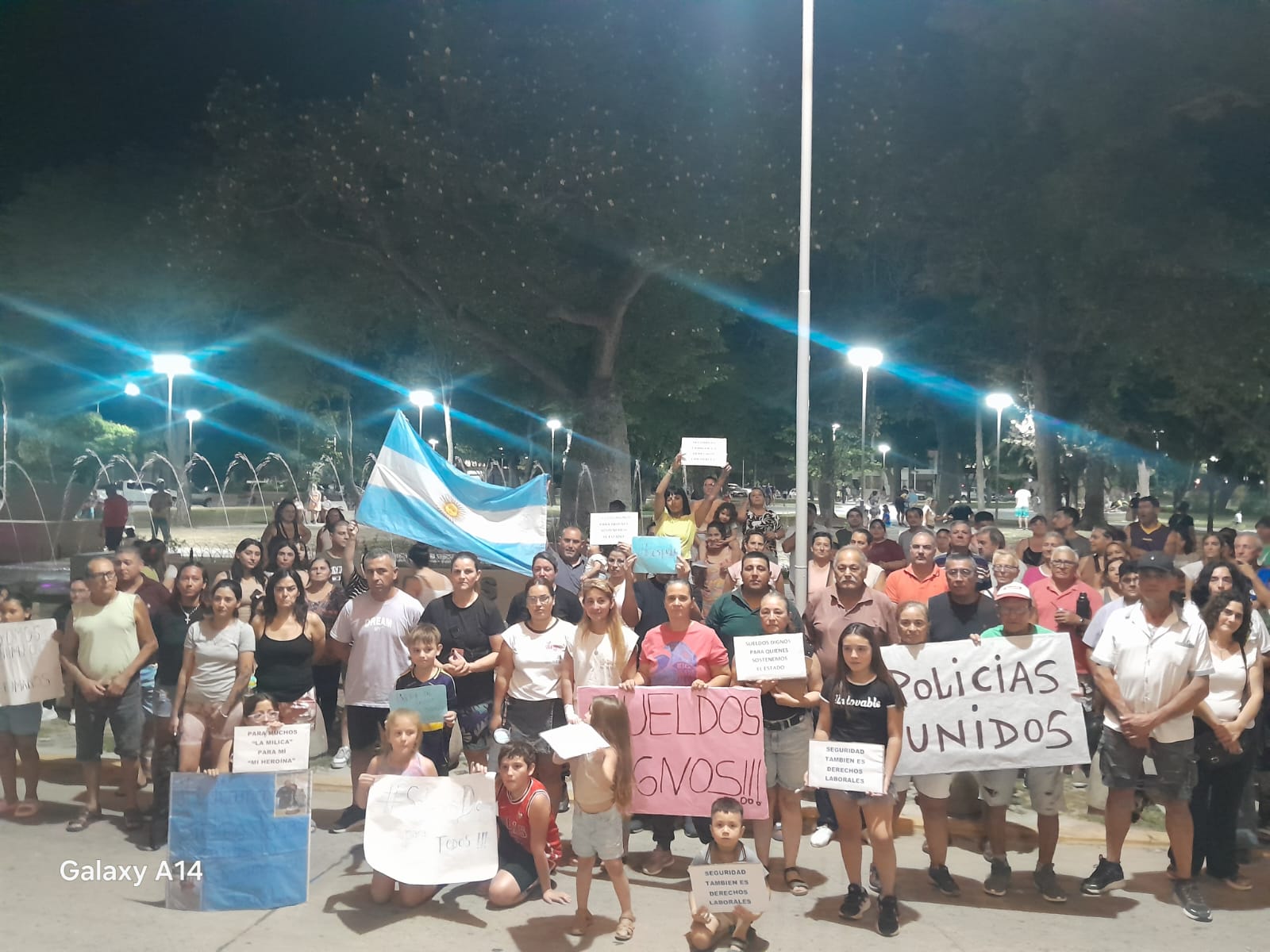 María Rosa Acosta, policía retirada y referente de la protesta, explicó a EME: “El malestar viene de hace tiempo. Nuestros familiares policías son bastardeados por el gobierno provincial y sus políticas. Llegamos a un punto que supera todo lo que veníamos pasando. Por eso buscamos la recomposición salarial: nuestros sueldos básicos quedaron muy bajos, como los de todos los empleados públicos, y teniendo en cuenta la carga que tienen los policías”.