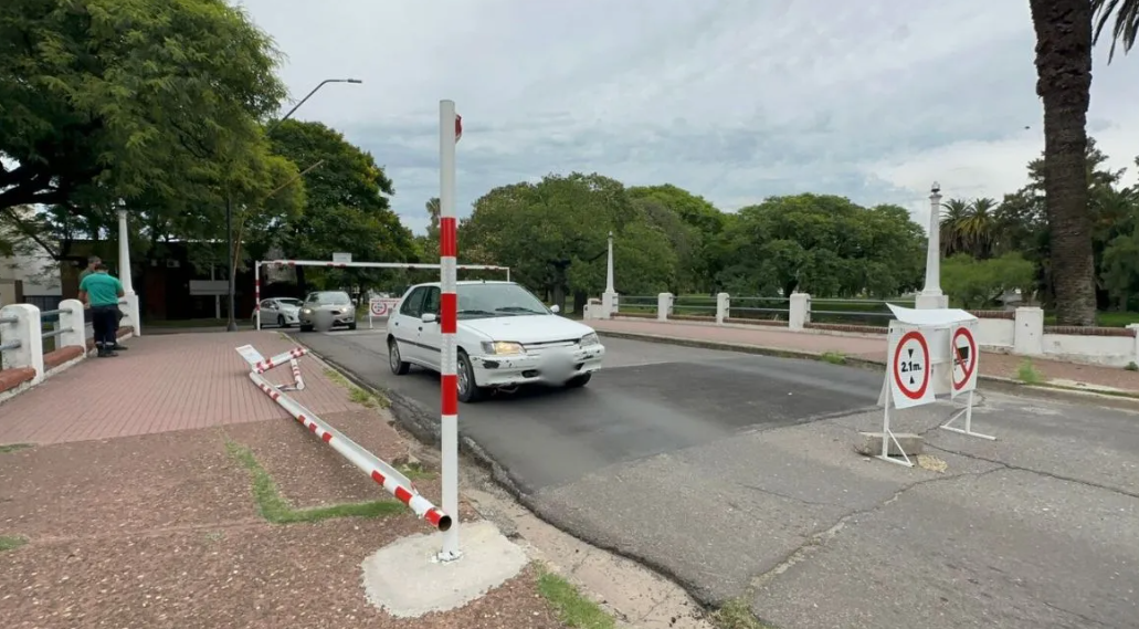 El arco delimitador de altura del puente del Parque Juan de Garay volvió a ser dañado este jueves por la tarde, alrededor de las 15.30. La estructura, emplazada sobre calle Salvador Caputo, ya había sido reparada a comienzos de enero tras un episodio similar, cuando una camioneta la arrancó por completo.