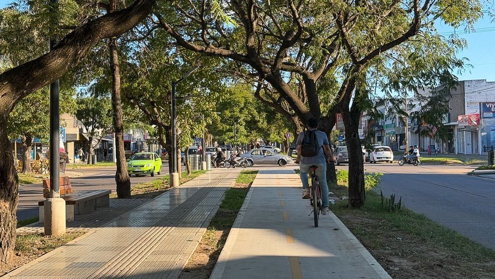 Las primeras cuadras habilitadas cuentan con veredas nuevas, mobiliario urbano, juegos para niños, dársenas de estacionamiento y bicicleteros, consolidando un entorno más accesible y ordenado.