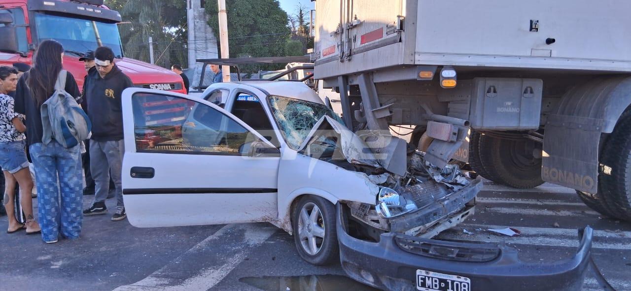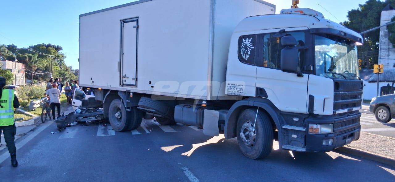 Según el informe del móvil de EME, el siniestro fue un choque por alcance entre dos camiones, dos camionetas y un automóvil que fue el que terminó más dañado tras incrustarse bajo el paragolpes trasero de uno de los rodados de carga involucrados, lo que obligó a interrumpir momentáneamente la circulación en ese tramo de la ruta.