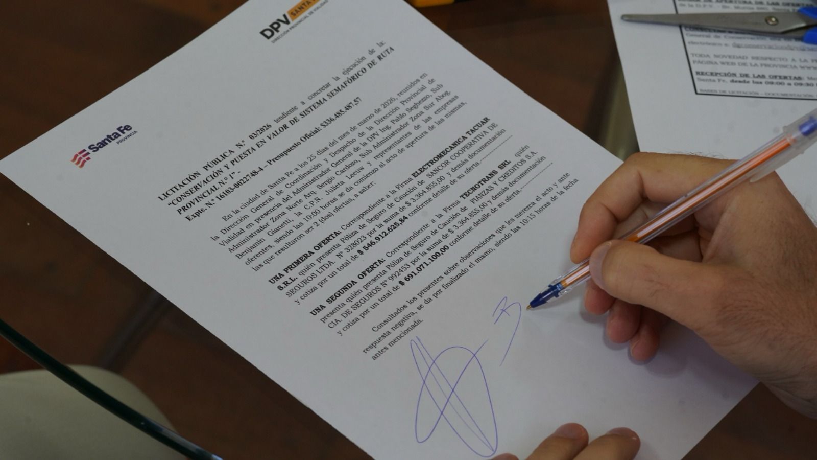 La apertura de sobres tuvo lugar en las oficinas centrales de la Dirección Provincial de Vialidad (DPV) y contó con la presencia del administrador general, Pablo Seghezzo; y los subadministradores del norte y sur provincial, Sergio Cardozo y Benjamín Gianetti.
