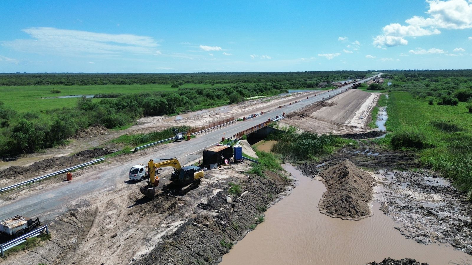 Las tareas contemplan la reconstrucción de taludes y mejoras en los accesos al puente sobre el río Salado, dentro del plan de infraestructura vial de la Provincia.