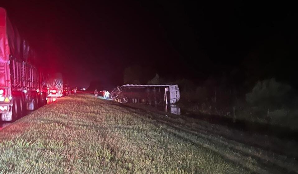 Un camión que transportaba vacunos volcó durante la madrugada en la autopista Santa Fe-Rosario, a la altura de la localidad de Maciel, generando importantes complicaciones en el tránsito.