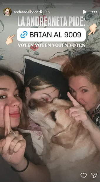 En otro posteo, se le sumó su hija Anna Chiara para pedir a los seguidores de Gran Hermano que voten la salida del exfutbolista, Brian Sarmiento: “La andreaneta pide Brian al 9009”.