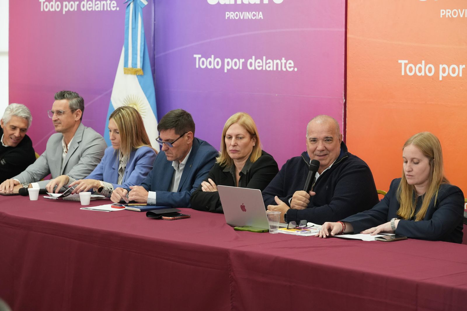Del encuentro participaron también los ministros de Educación, José Goity, y de Igualdad y Desarrollo Humano, Victoria Tejeda; los intendentes de Santa Fe, Juan Pablo Poletti, y de Rafaela, Leonardo Viotti; la diputada nacional Gisela Scaglia; la vocera del gobierno provincial, Virginia Coudannes; y autoridades provinciales, legislativas y municipales vinculadas a la organización del evento.