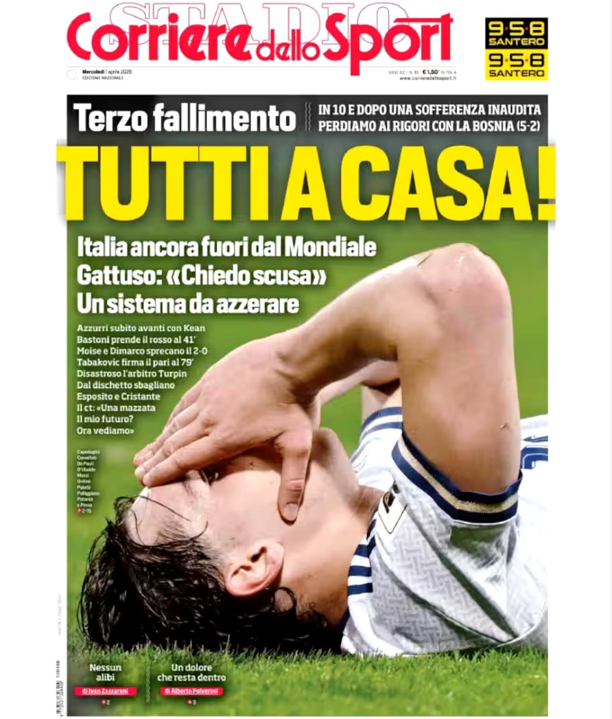 «Drama, tragedia, vergüenza y fracaso» son los conceptos mas repetidos en la prensa italiana en estas horas a la hora de analizar el presente de un país que fue tetracampeón del mundo: 1934, 1938, 1982 y 2006.