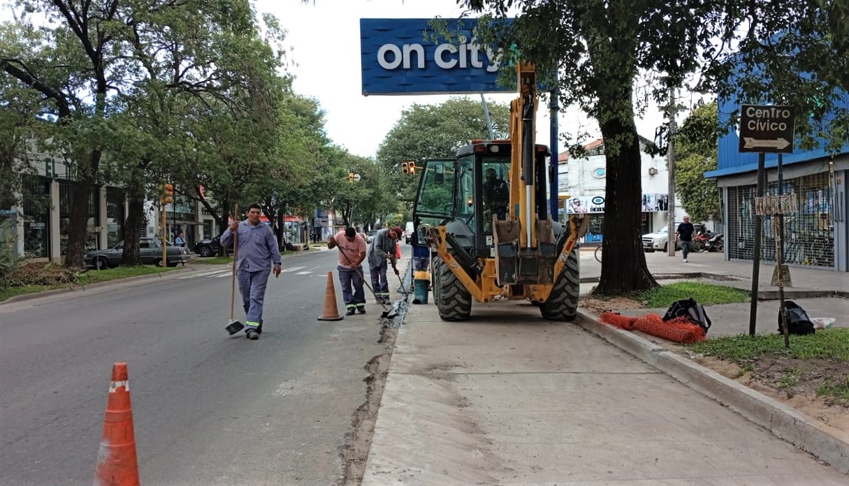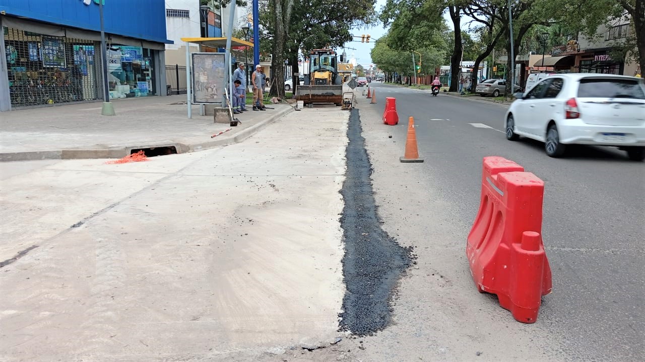 Los trabajos se desarrollan sobre avenida Luján, entre calles 9 de Julio y Alvear, en el carril lento con sentido hacia el cruce con la Ruta Nacional 19, en la zona donde se ubica la parada del transporte público de pasajeros.