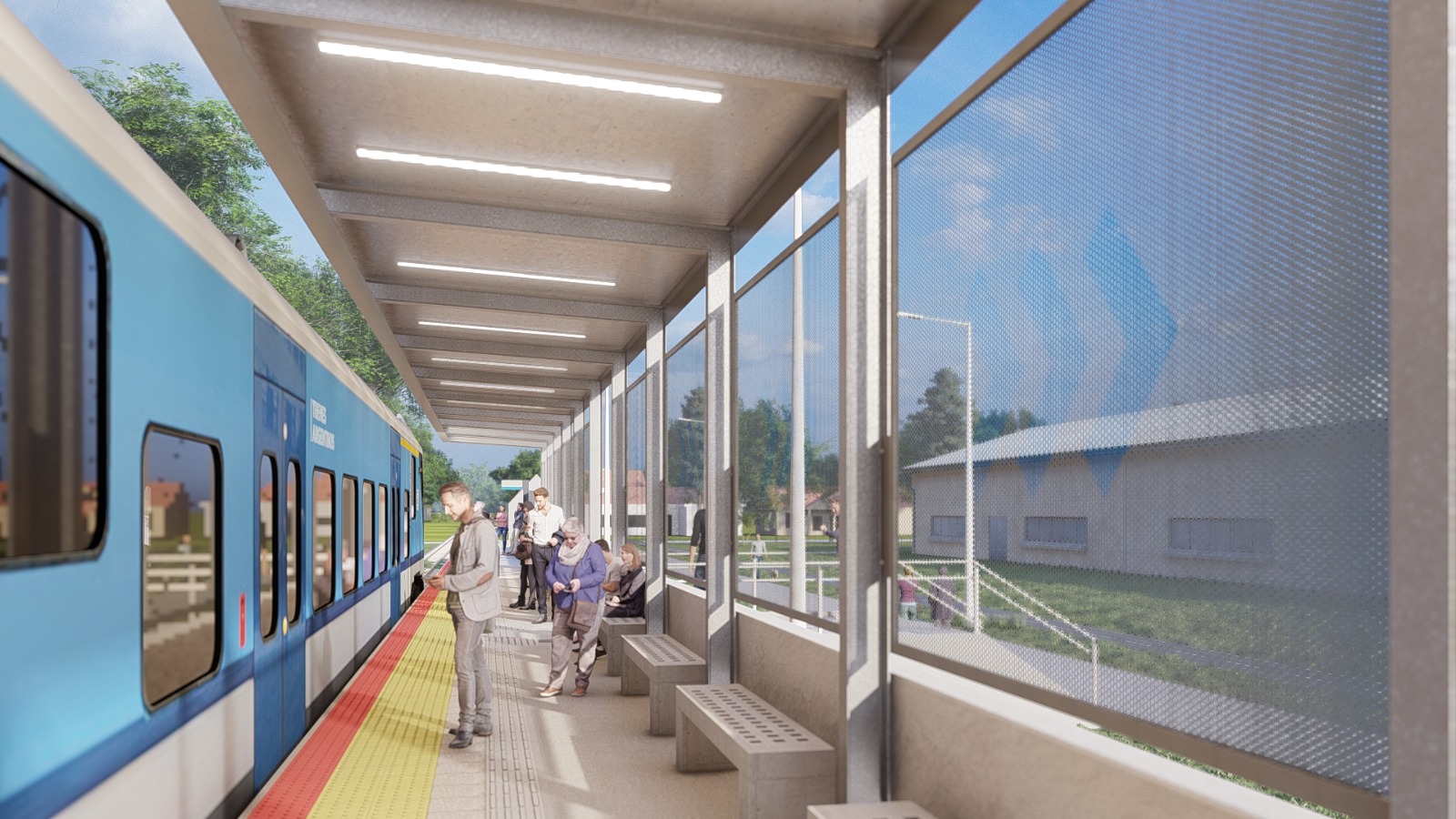 Los trabajos consisten en la materialización de apeaderos, refugios de espera para pasajeros y los accesos a las correspondientes plataformas. Los mismos tendrán un desarrollo lineal con dimensiones de 100 x 3 metros aproximadamente, con rampas en los extremos y un acceso perpendicular al andén en su parte media.