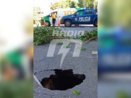 Un «gran» socavón interrumpe el tránsito en barrio Sur